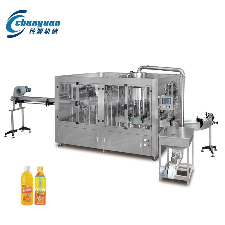 純源機械廠家供應的全自動茶飲料灌裝機械采用卡瓶頸傳動技術,實現全自動沖瓶、灌裝、旋蓋等工序,自動化程度高;配有完善的溫度控制系統和回流系統,設有完善的自動清洗系統及控制程序,整個飲料機械與液體接觸的零件全部使用優質不銹鋼材料及食品級橡膠。